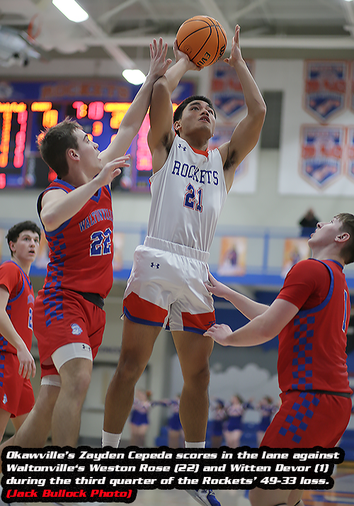 Waltonville held the Rockets to a single field goal in the fourth quarter, keeping the the hosts off of the scoreboard for nearly six minutes as they cruised home with a 49-33 win.