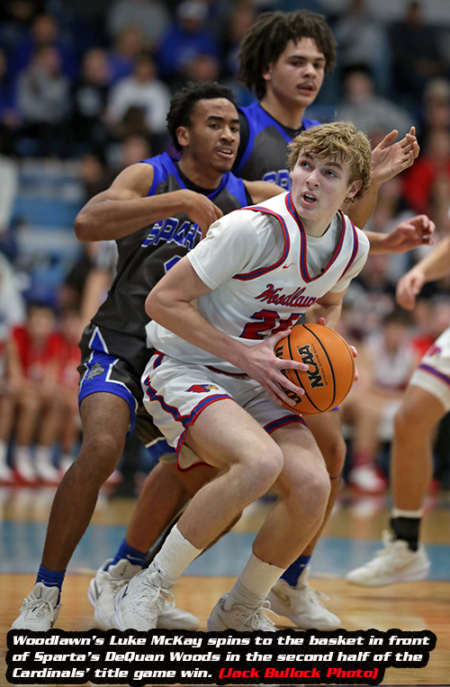Woodlawn broke free from Sparta in the second quarter by connecting on seven-consecutive field goal attempts and added a pair of free throws an another basket for a 20-0 run.