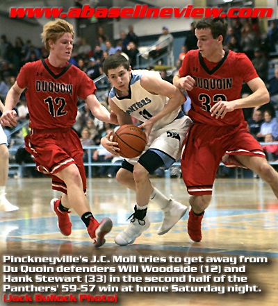 With a possession in the final seconds of overtime on Saturday night at home with the game tied, the Pinckneyville Panthers two best play makers made the difference in a 59-57 win over Du Quoin.