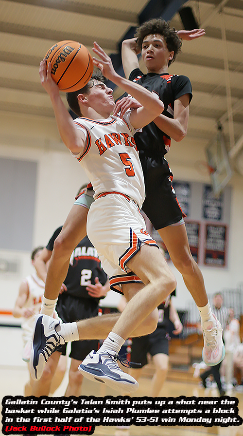 That is exactly how things played out during his Gallatin County Hawks 53-51 victory over Galatia at home in a key Greater Egyptian Conference battle.