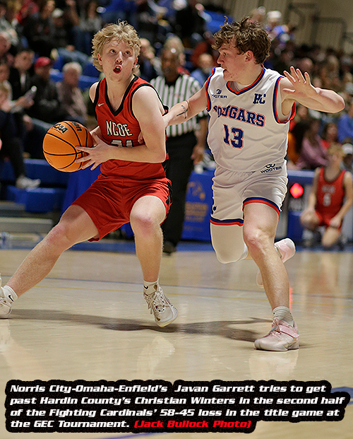 HARRISBURG – Hardin County head coach Rodney Lane doesn't really like playing any sort of zone defense but Saturday, with some first half foul trouble he reluctantly switched from his usual man-to-man and it allowed Norris City-Omaha-Enfield to score the final eight-points of the first half.