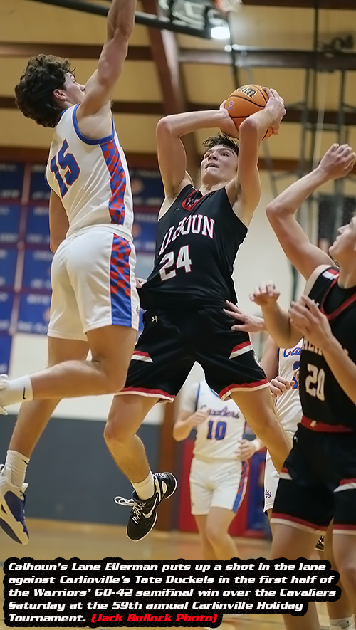 “Our half-court defense was arguably as good as it has been all season. I mean, there's 60-points up there on the scoreboard but that doesn't indicate the effort on the defensive end. I thought tonight was as good as we could play defensively,” said Coach Suits. “We just couldn't get one (basket in the fourth quarter) and their athleticism changes some of that but we've seen athletic teams. Carrollton is athletic and Metro-East Lutheran are the longest we've seen but they (Calhoun) were just better than us tonight.”